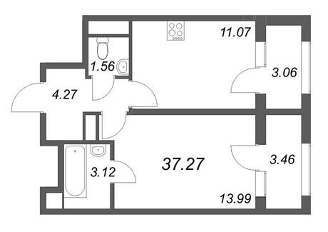 Без отделки Пол: выравнивающая цементно-песчаная стяжка; ванная комната и туалет — гидроизоляция Электрика: электрический щит, точка подключения к домофонной сети с установкой абонентского оборудования Сантехника: радиаторы отопления Прочее: счетчики воды, электросчетчик, остекление балконов и лоджий (в соответствии с проектом фасадного остекления), металлическая входная дверь